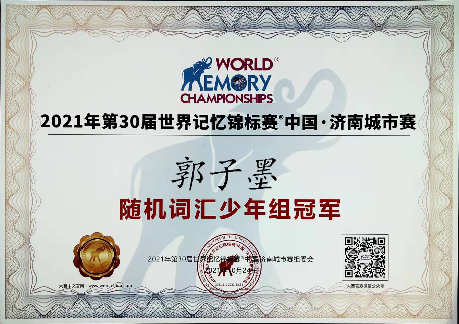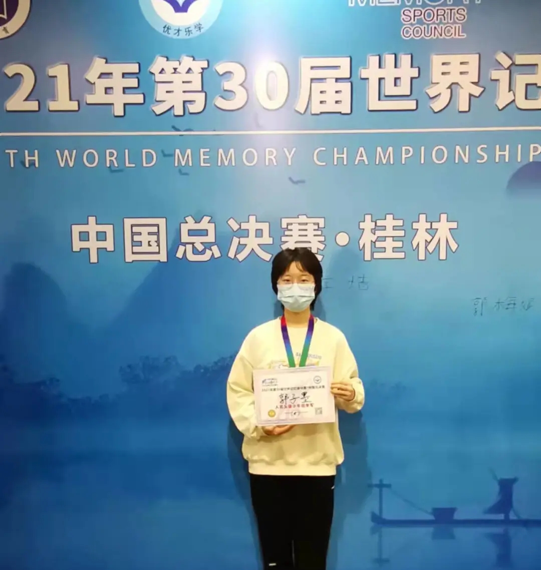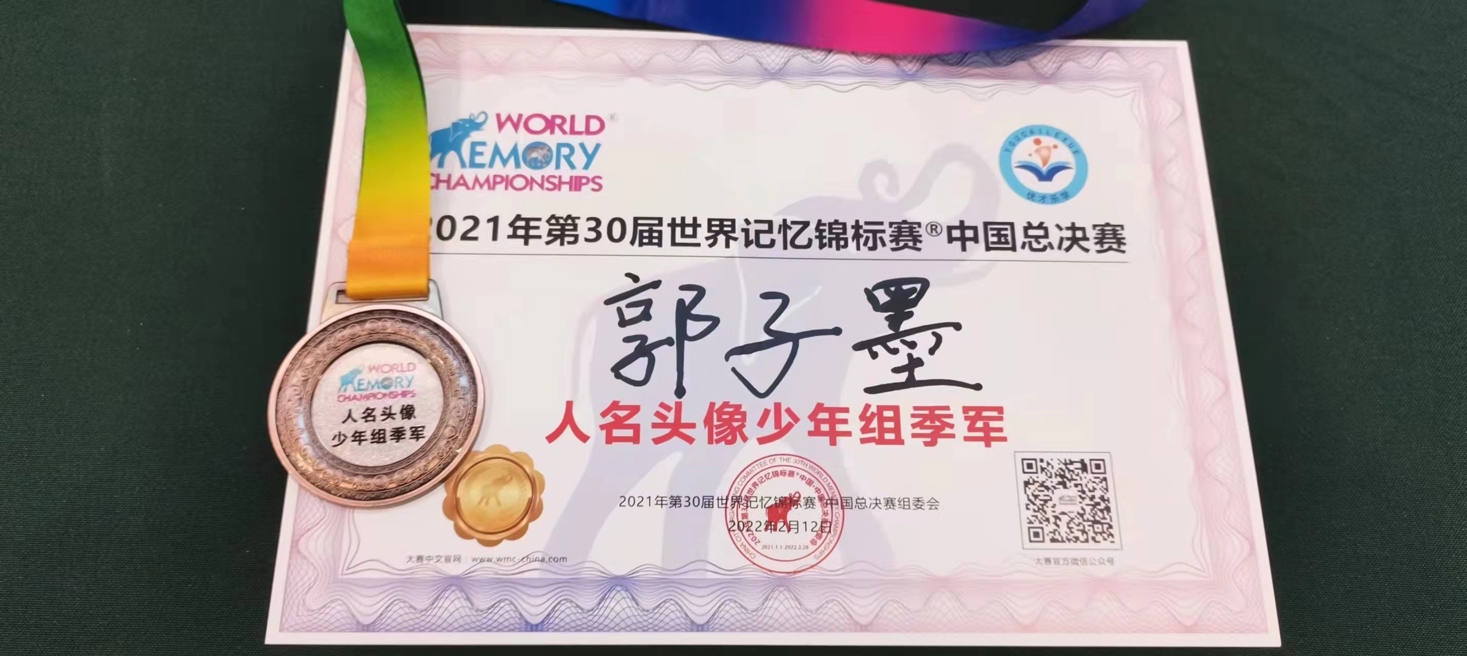 郭子墨同学以3538的总分拿到了世界记忆大师称号